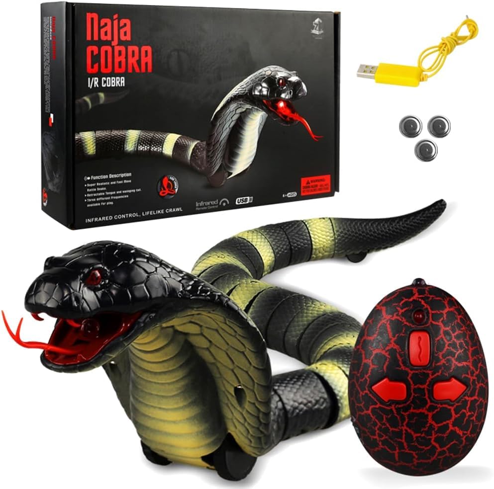 • Easy-to-Use Infrared Remote: Control the prank cobra snake’s forward crawling, and left and right turns using the included snake-egg-shaped infrared remote (range up to 20 ft.)
